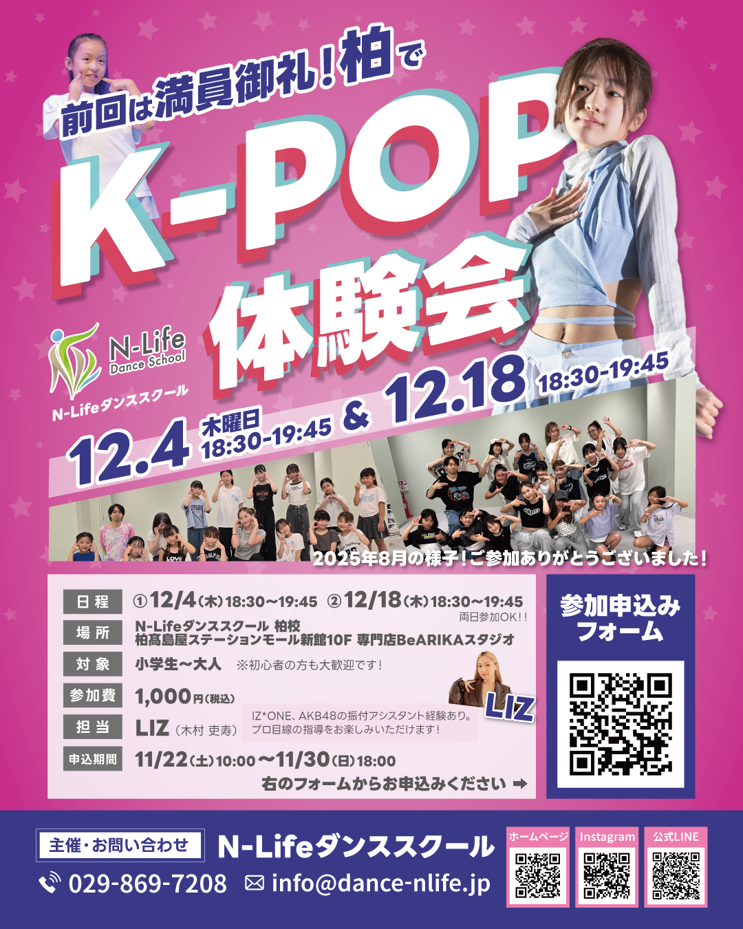 N-Lifeダンススクール柏クラス柏高島屋ステーションモール 新館10F 専門店 BeARIKA スタジオ前回大好評につき第2回!K-POP体験会を開催!! 2025年12月、N-Lifeダンススクール柏クラス [&hellip...