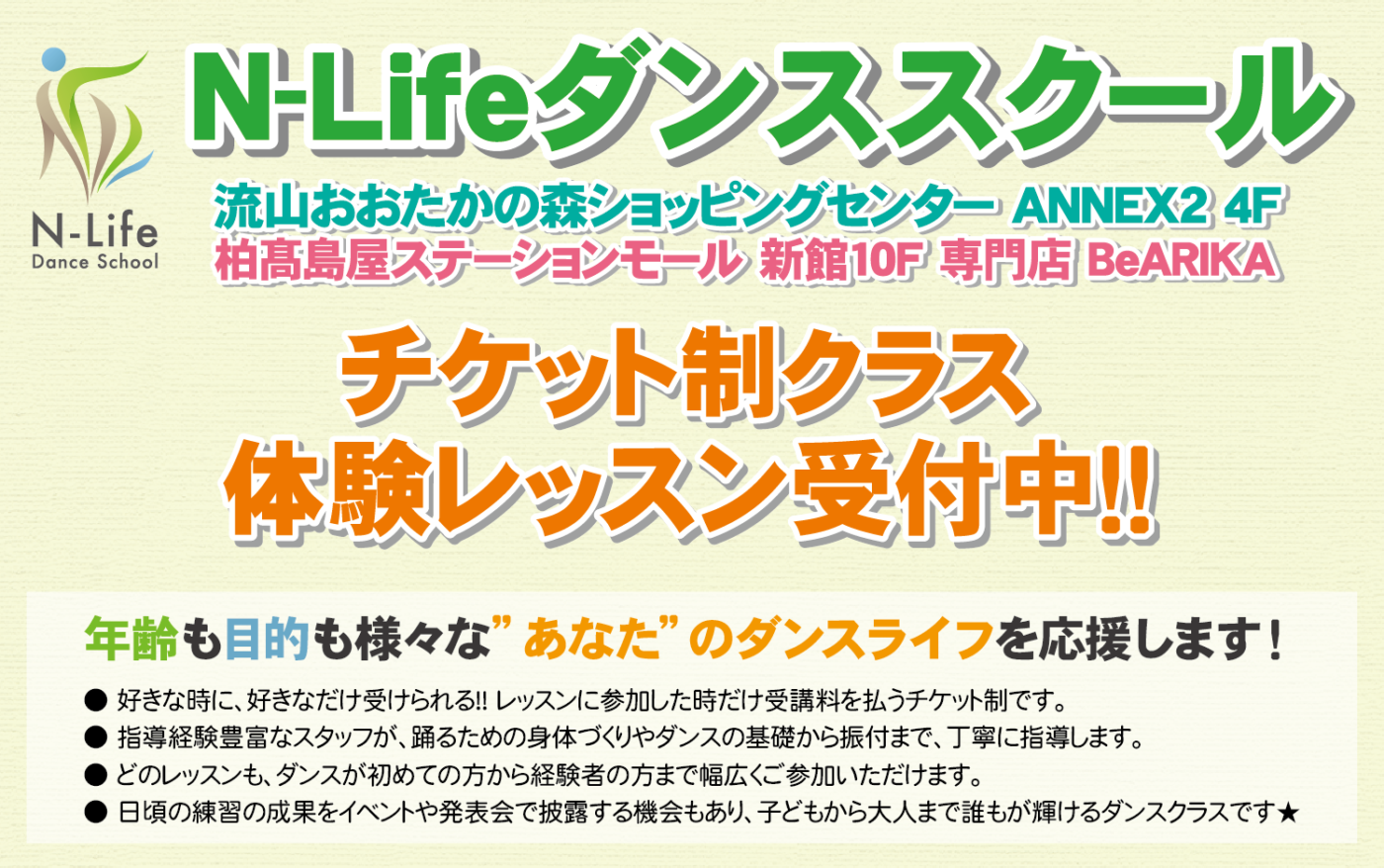 ご質問等は、N-Lifeダンススクール事務局まで。